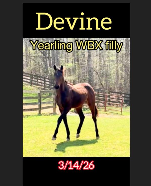 **SOLD: Serafina. Our Spotted 3/4 WBX Foal out of ( Sempatico x Villara ) a 2022 Bay Tobiano filly: DNA tested: Tt/EE/Aa, PSSM and WFFS negative